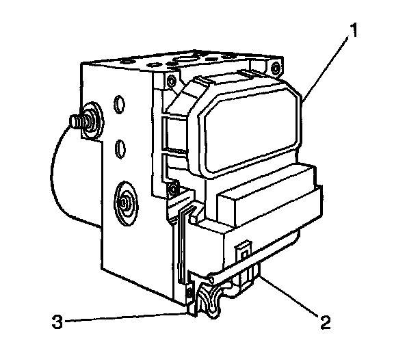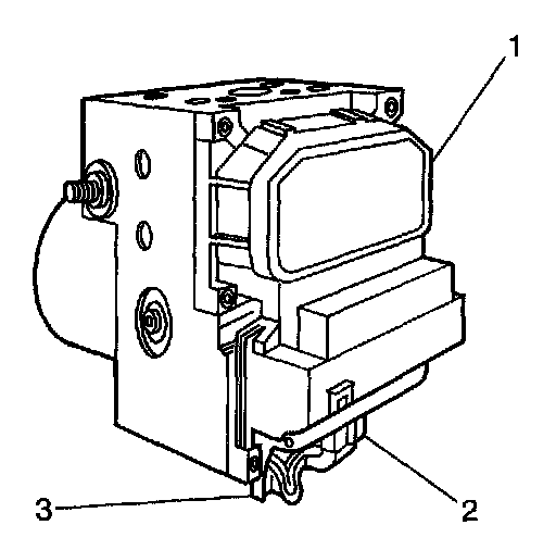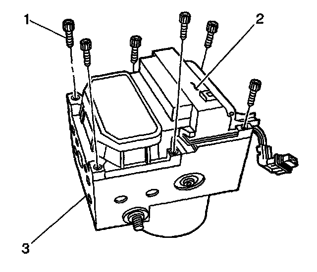 4. Remove 6 bolts (1) from the EBCM (2) and remove the EBCM from the BPMV (3).