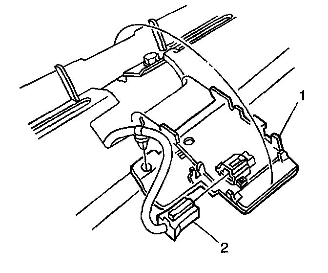3. Disconnect the wiring connector (2) from the DRL control module (1).