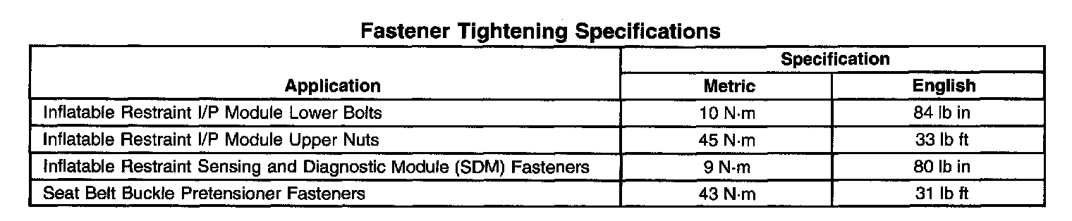 Fastener Tightening Specifications: