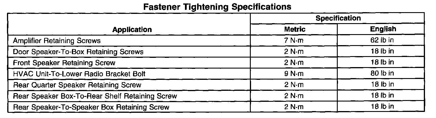 Fastener Tightening Specifications: