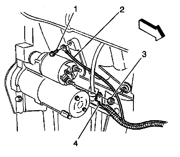 2. Install the positive cable nut (3) at the starter solenoid.