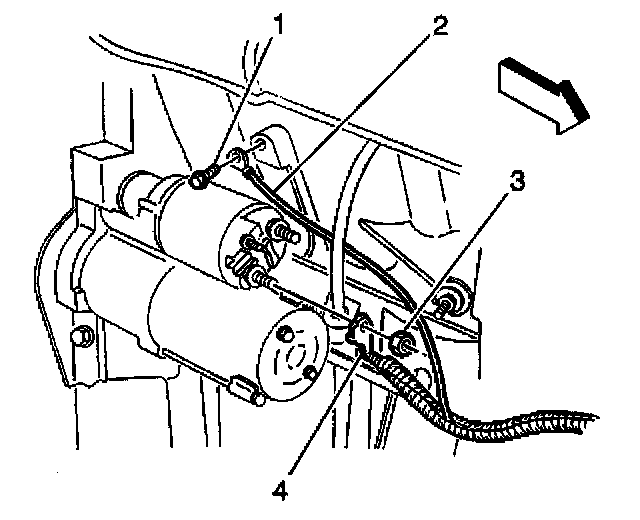 6. Remove the positive cable from the starter solenoid: