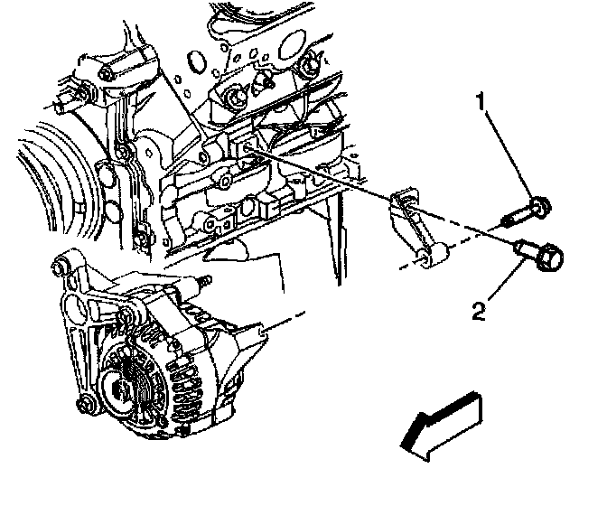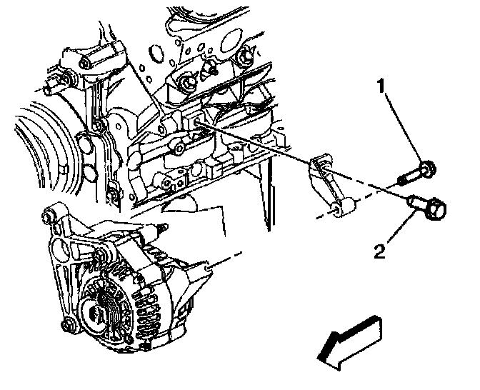 4. Remove the generator rear mounting bolt to the engine (2).