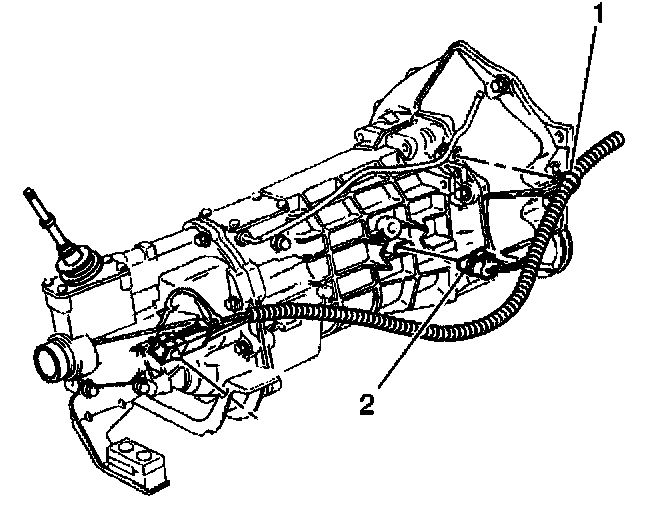 4. Install the transmission (1) to the vehicle, then rotate the transmission to the upright position.
