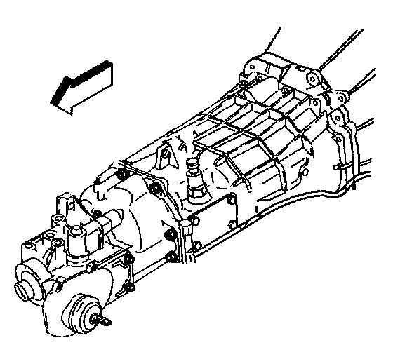 22. Pull the transmission rearward to just clear the locating dowels, then rotate the transmission 90 degrees to the right to gain clearance from the vehicle floor pan.