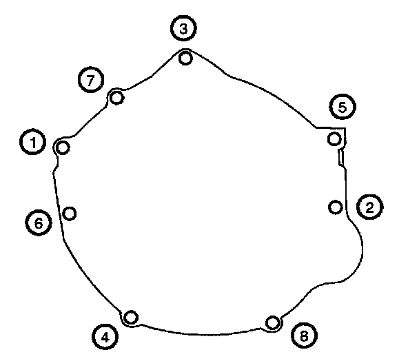 Important: Leave the 2 clutch housing to engine block retaining bolts located at the 10 and 2 o'clock positions tight at this time.