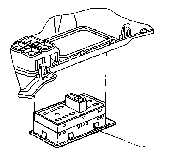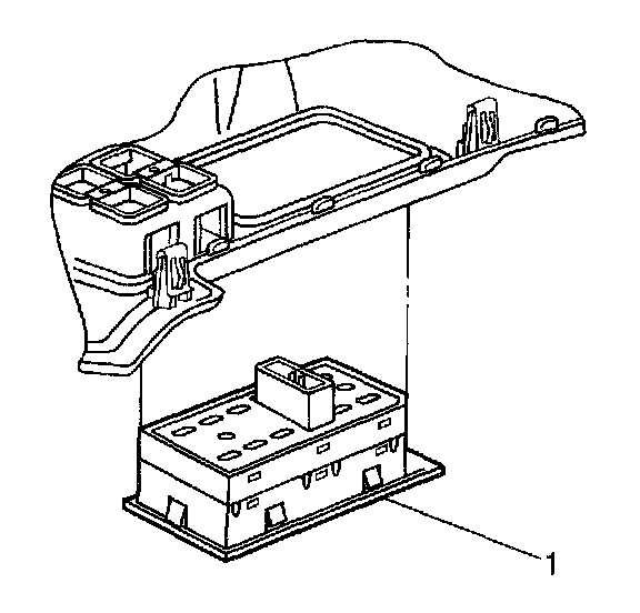 1. Install the power window switch (1) to the console trim plate, making sure the 6 retaining tabs are engaged.