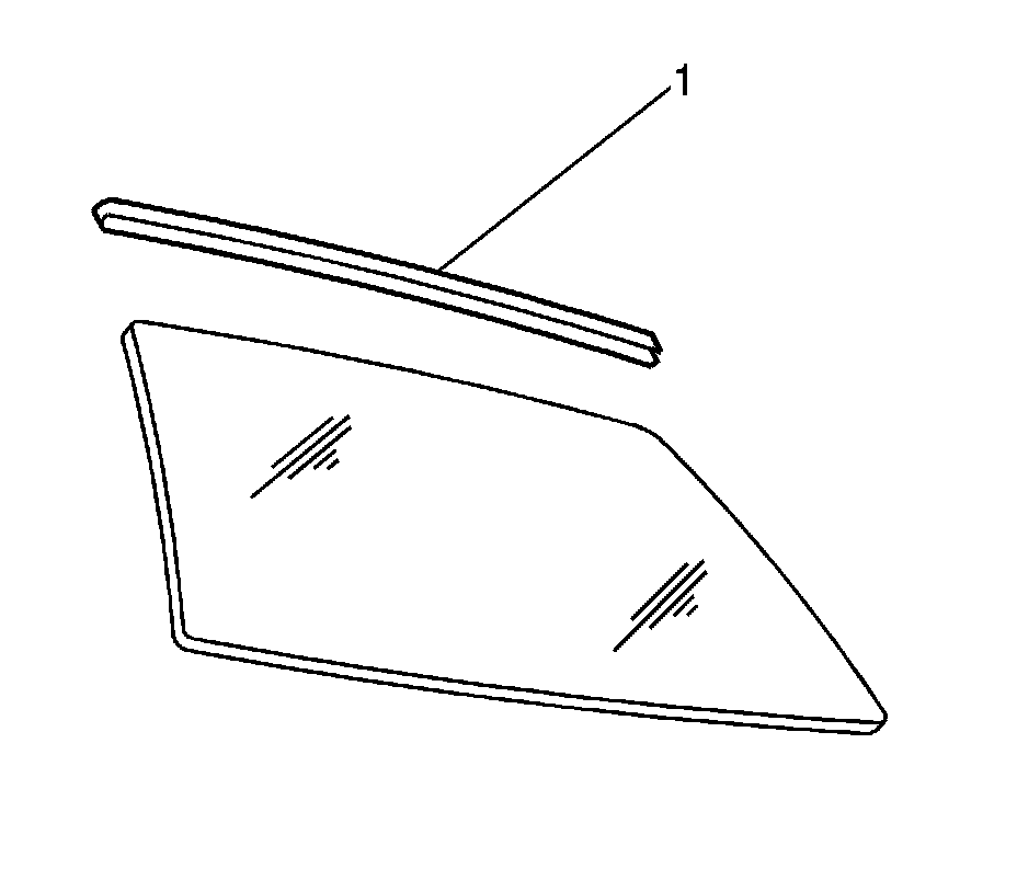 6. Remove the rear window reveal upper molding (1). Refer to Rear Window Reveal Molding Replacement (Service and Repair) in Rear Window Reveal Molding.