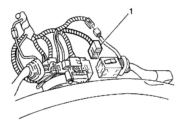 2. Disconnect the wiper control switch harness connector (1) by depressing the harness retaining tab and pulling the connectors apart.