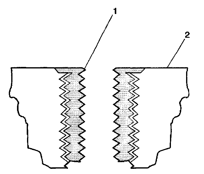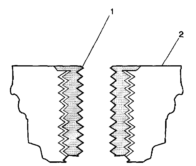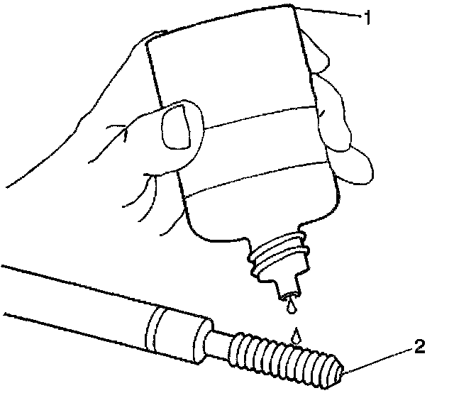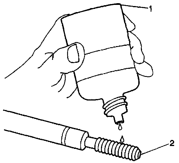 11. Apply thread-lock LOCTITE (tm) 277, J 42385-109 (1), or equivalent to the insert OD threads (2).