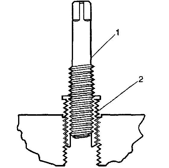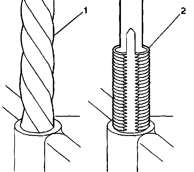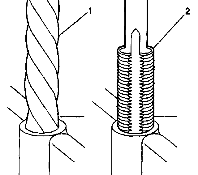 1. Drill out the threads of the damaged hole (1).