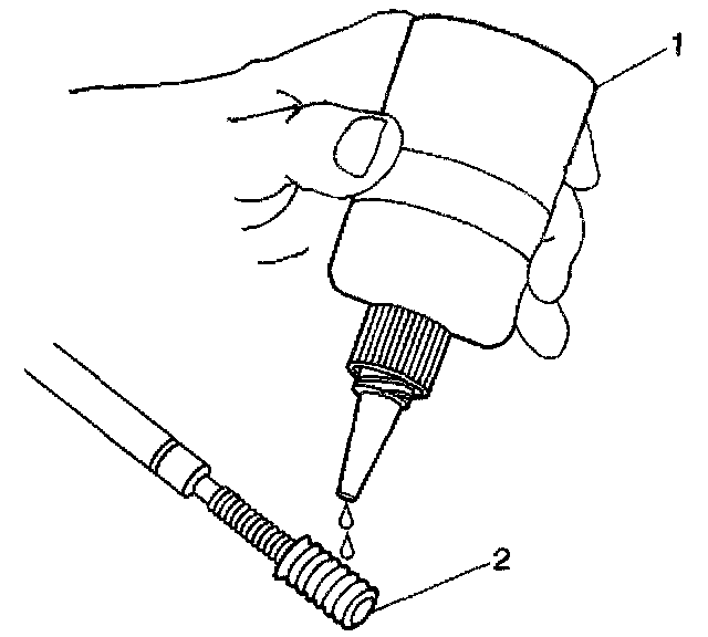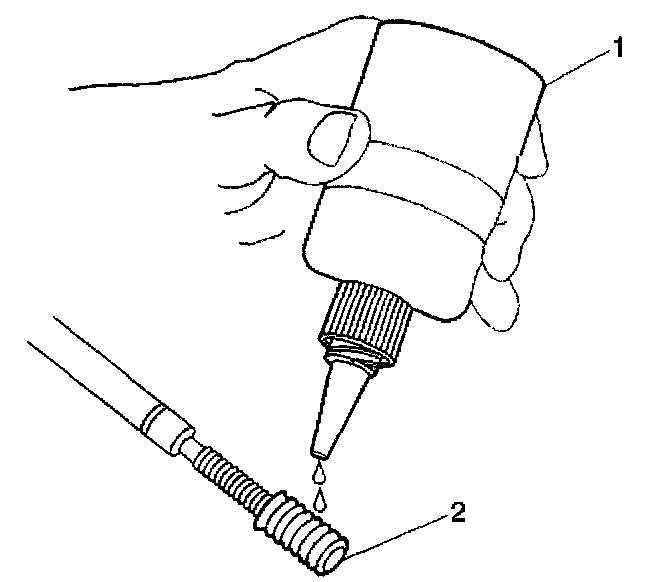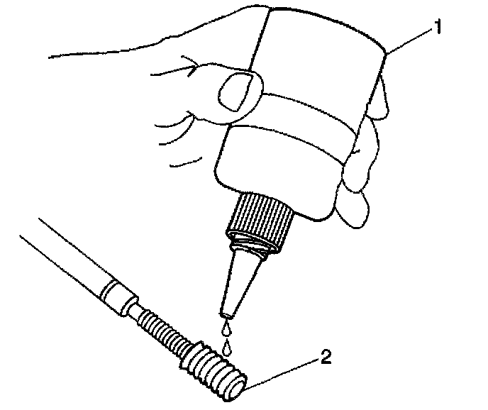 11. Lubricate the threads of the installer tool (2) with the driver oil (1).