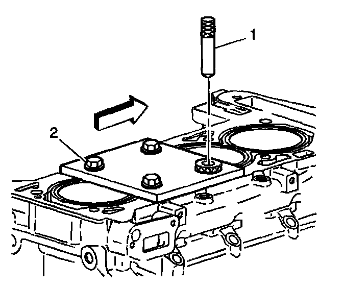 11. Remove the fixture plate (1), bushing (2), and bolts.