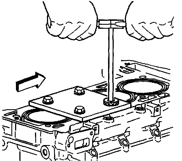Important: The fixture plate and bushing remains installed onto the engine block during the insert installation procedure.