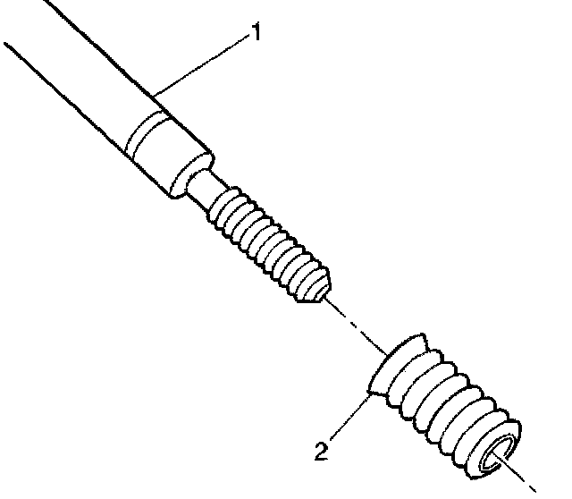 15. Lubricate the threads of the installer tool (2) with the driver oil (1).