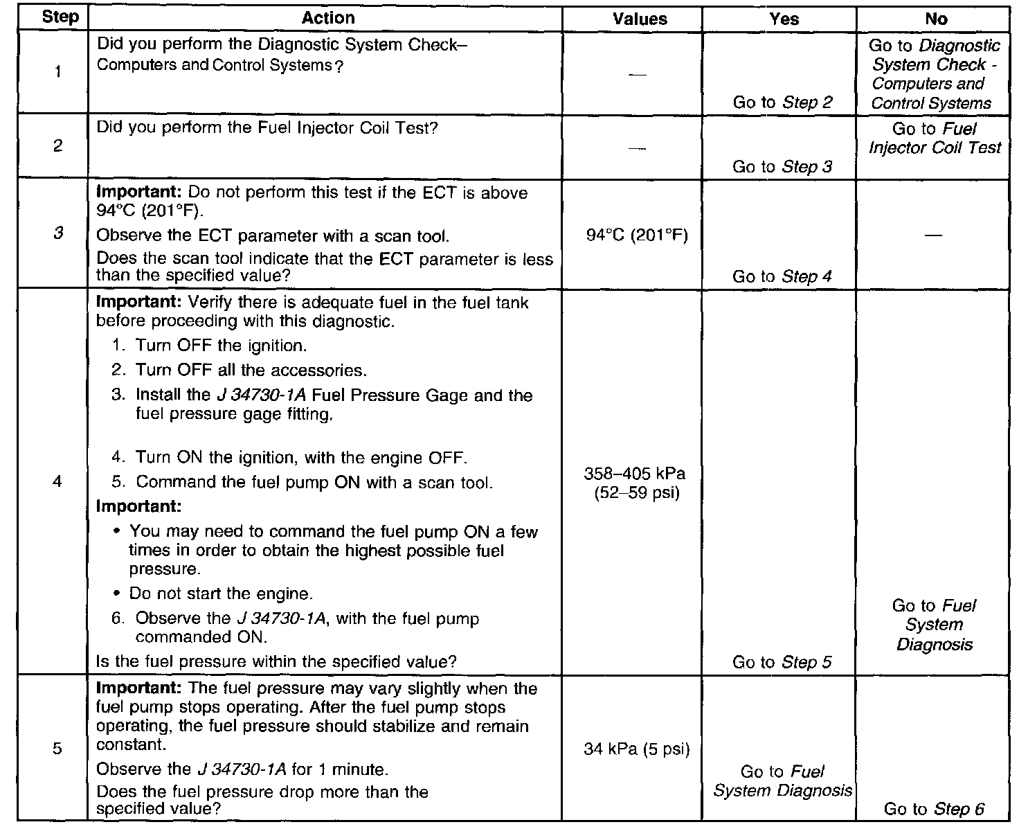 3. The engine coolant temperature (ECT) must be below the operating temperature in order to avoid irregular fuel pressure readings due to hot soak fuel boiling.