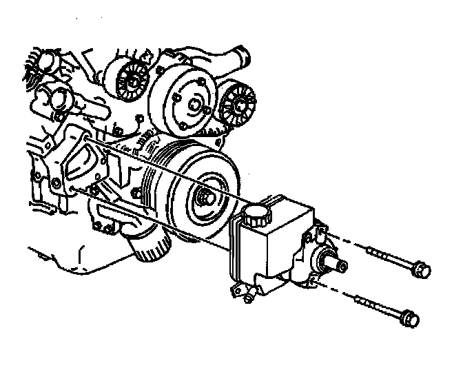 28. Install the power steering pump and the bolts.