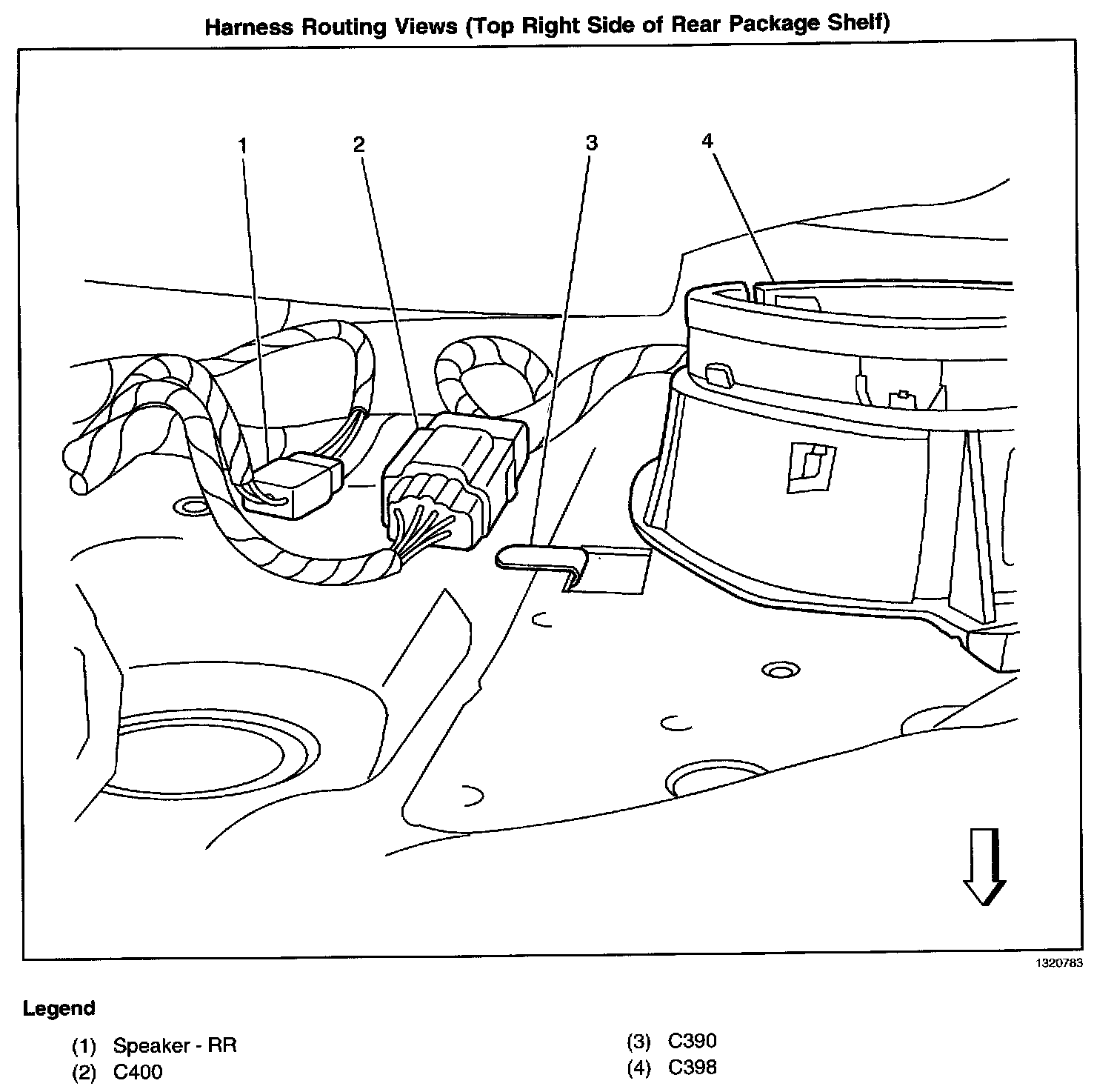 Harness Routing Views (Top Right Side Of Rear Package Shelf):