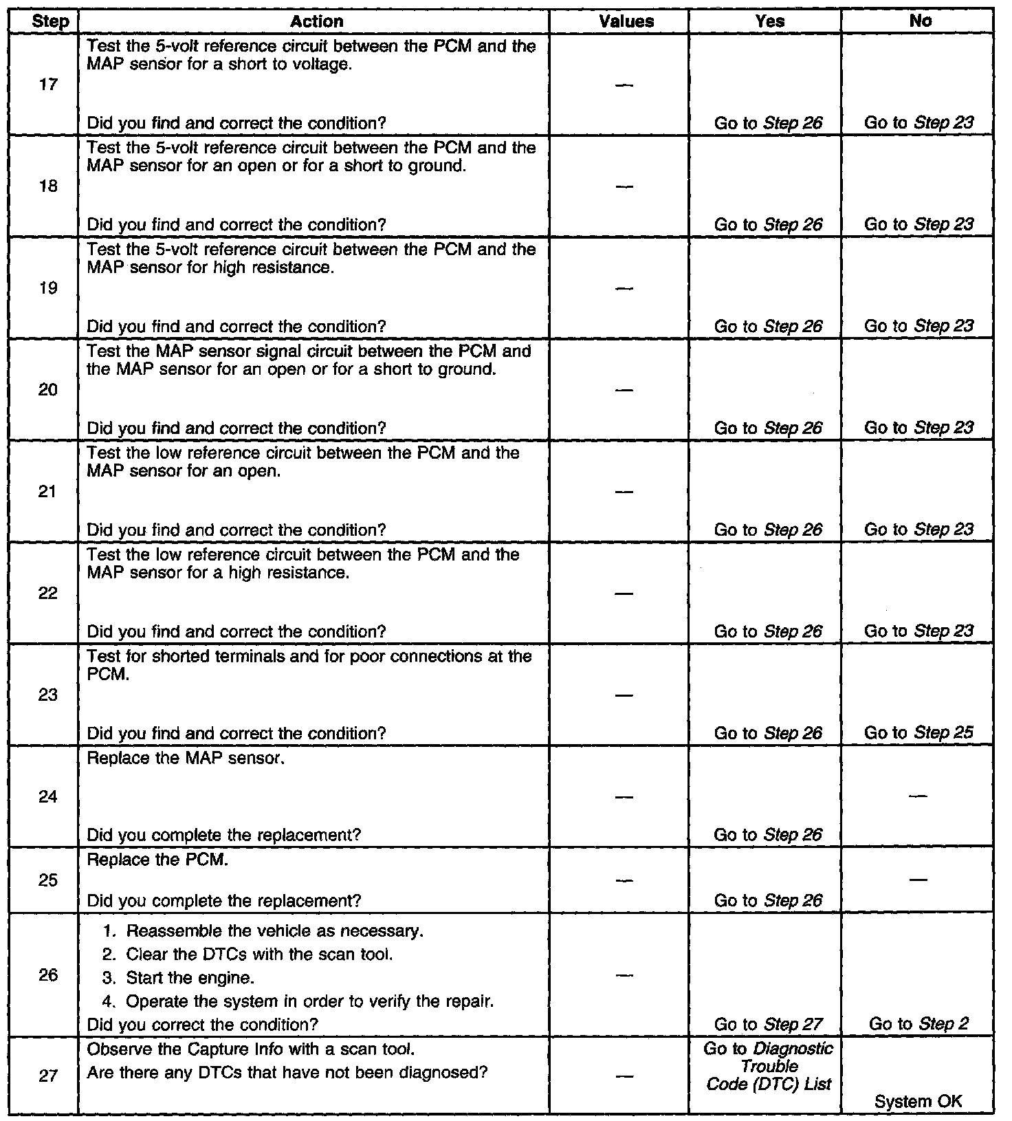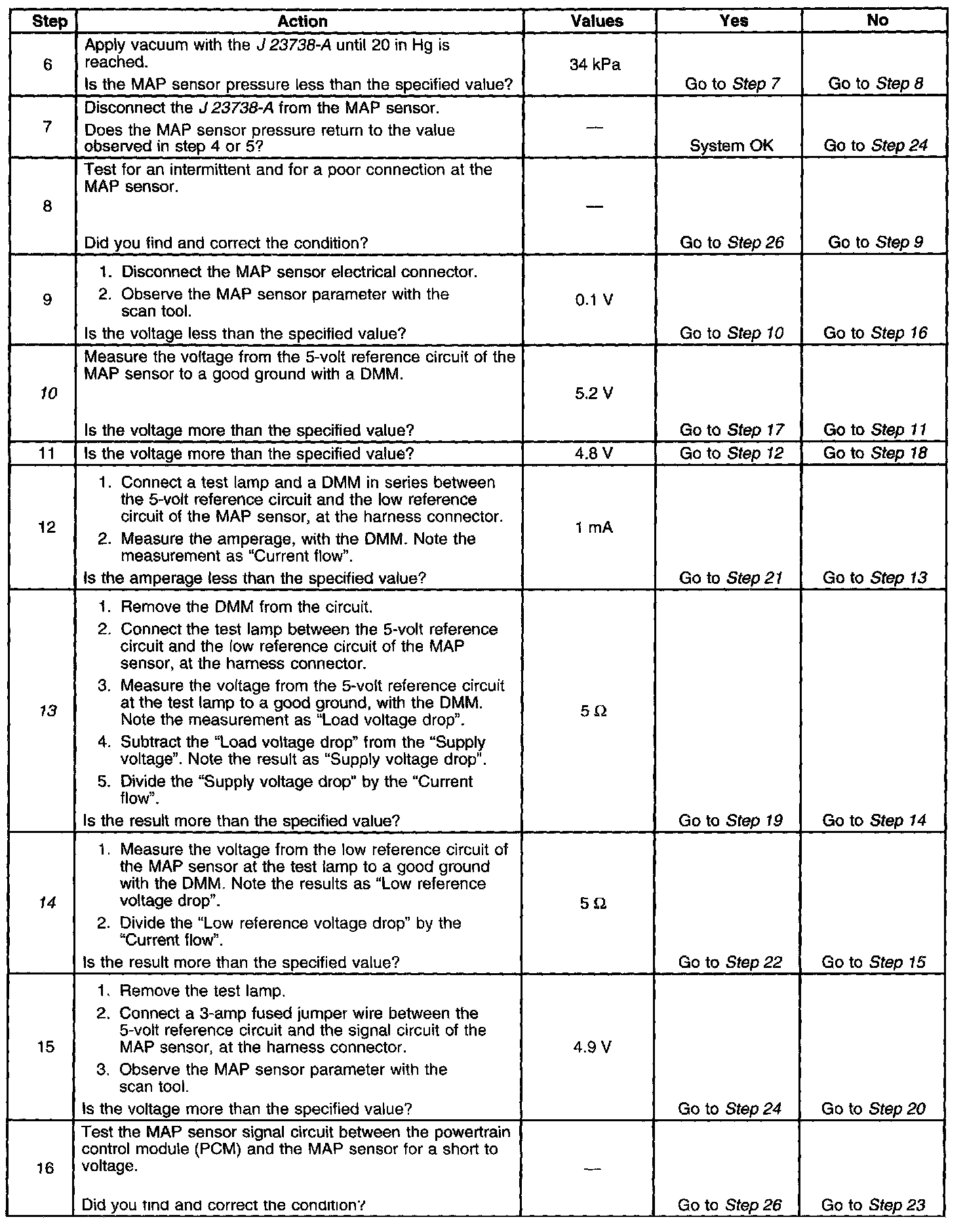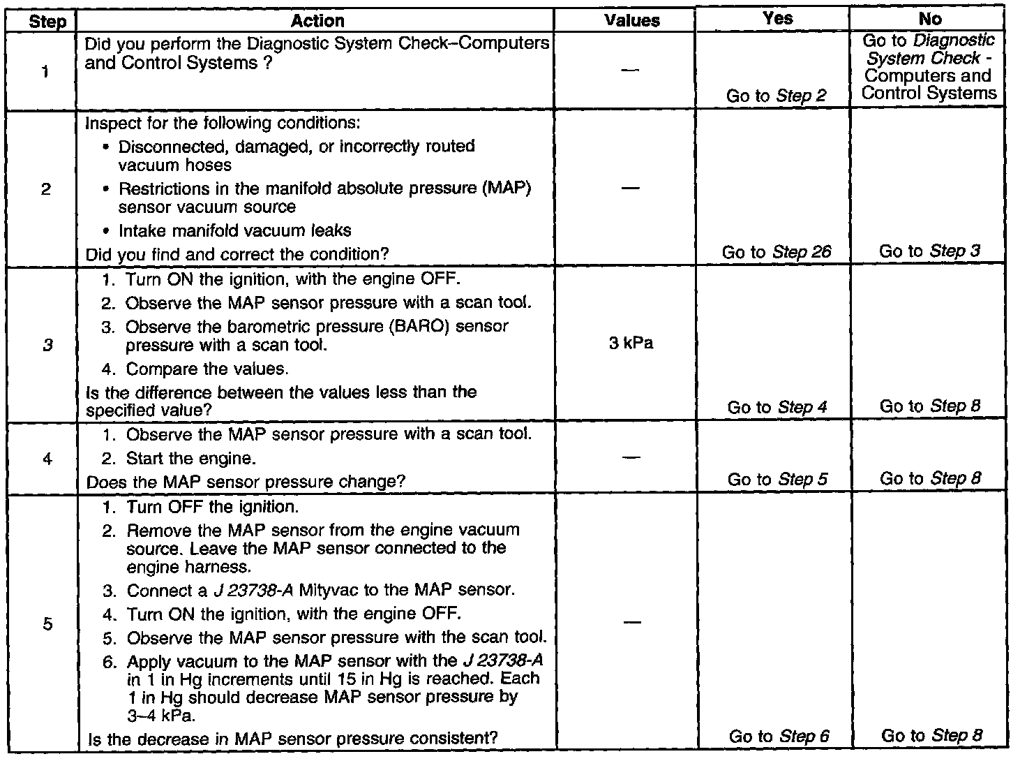 3. This step tests the ability of the MAP sensor to correctly indicate barometric pressure (BARO).