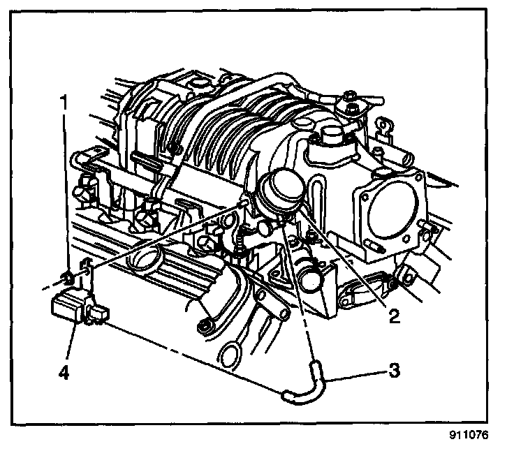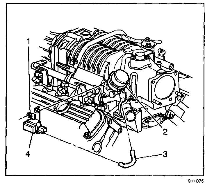 4. Connect the boost source signal hose (3) to the boost control solenoid (4).