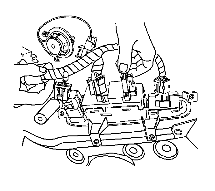 Important: When removing a power window switch, the ignition switch must be in the OFF position. This will eliminate the possibility of shorting out the power window switch when using a metal tool to remove the power window switch from the wiring harness.