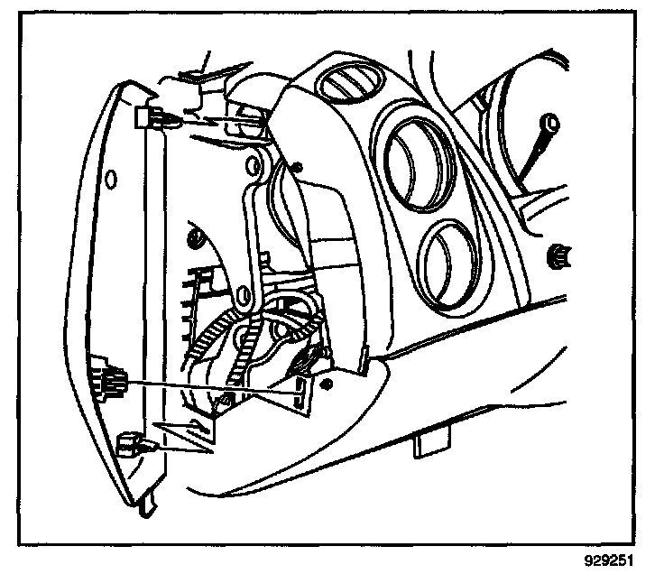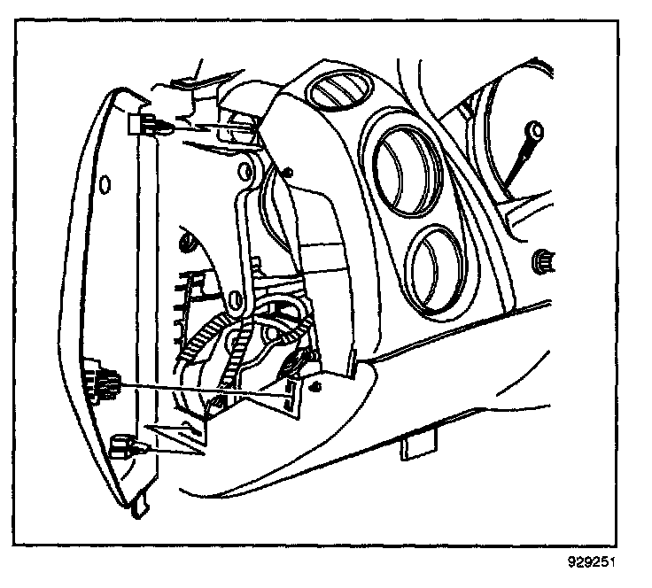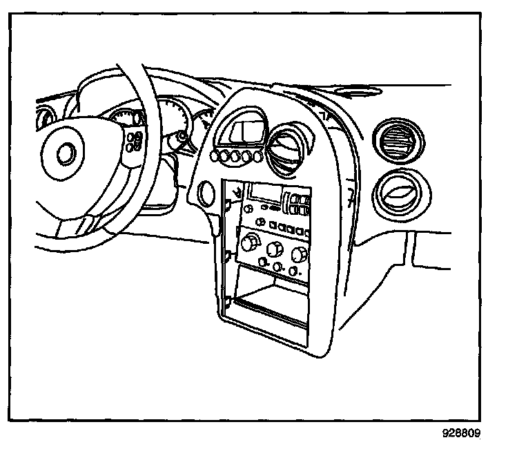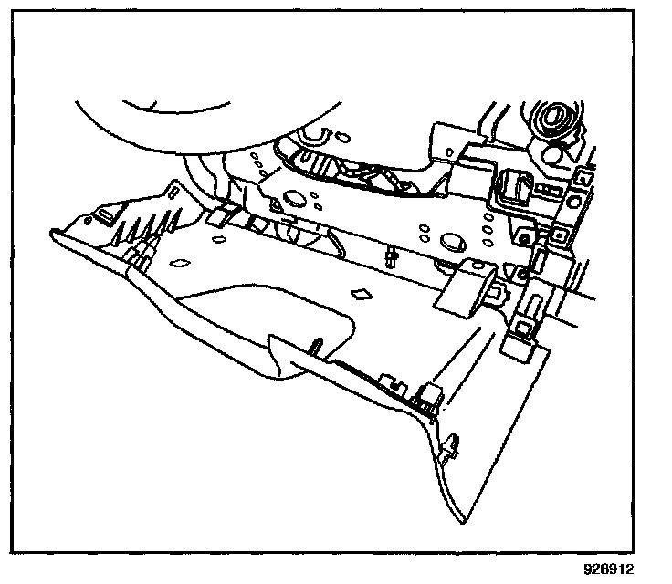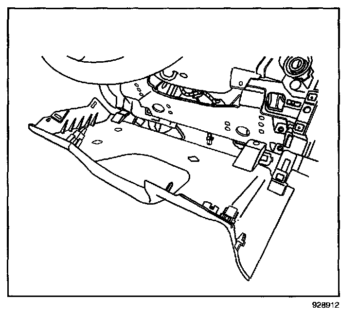 10. Pull the I/P steering column opening filler rearward. Remove the I/P steering column opening filler.