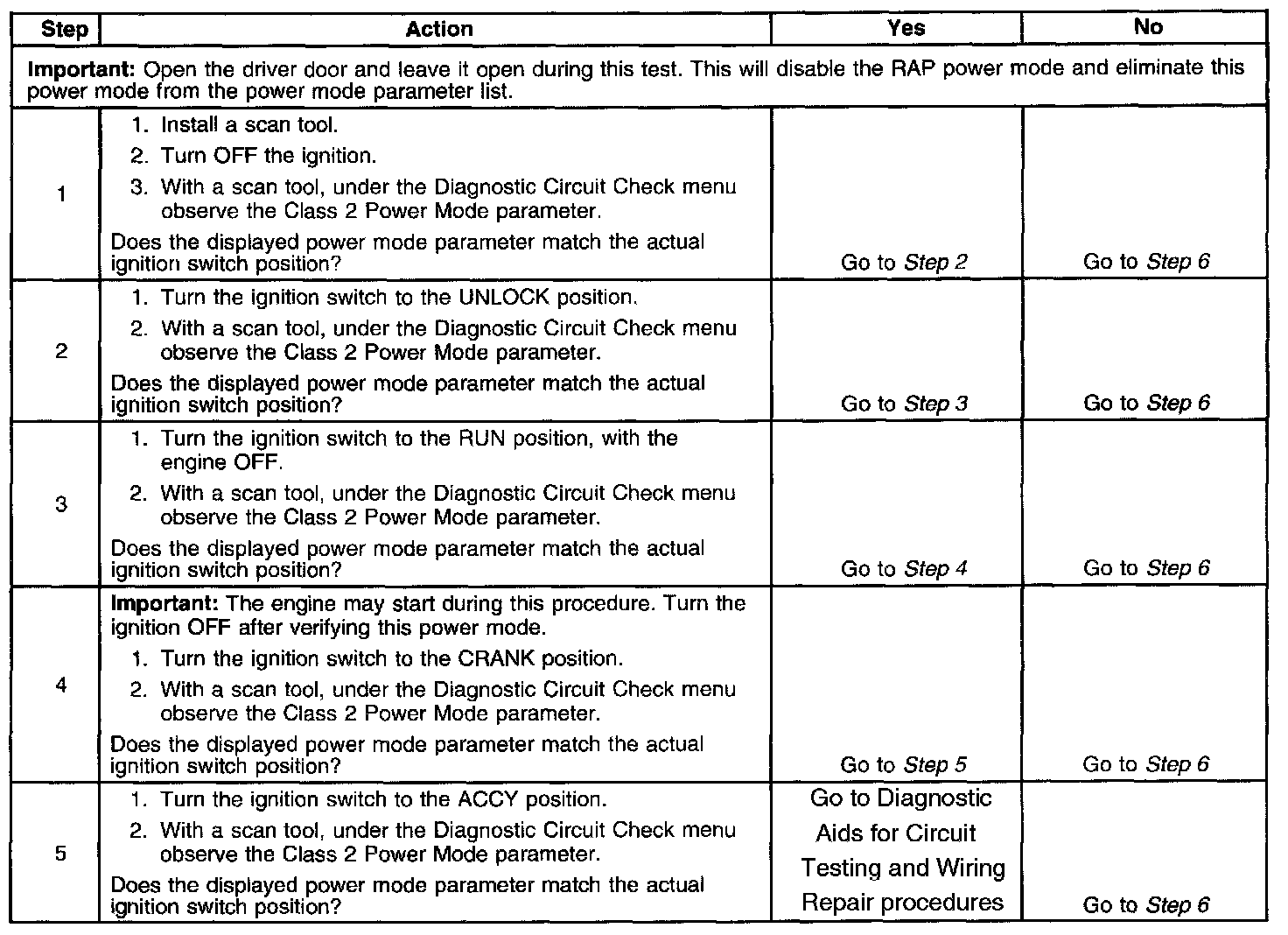 Normal vehicle serial data communications and module operations will not begin until the system power mode has been identified. Discrete wires from the ignition switch contacts are monitored by a module which acts as the power mode master (PMM) in order to determine the correct power mode. The module which is the PMM communicates the system power mode to all modules on the serial data lines. Refer to Body Control System Description and Operation to identify which module is the PMM and the applicable power mode look up table.