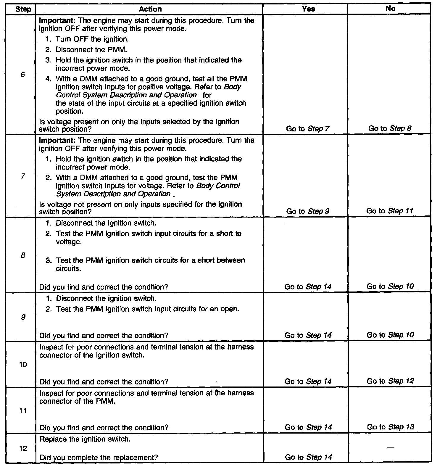 8. If any ignition switch parameters that should be inactive in the present ignition switch position are active, 2 ignition switch signal circuits may be shorted together.