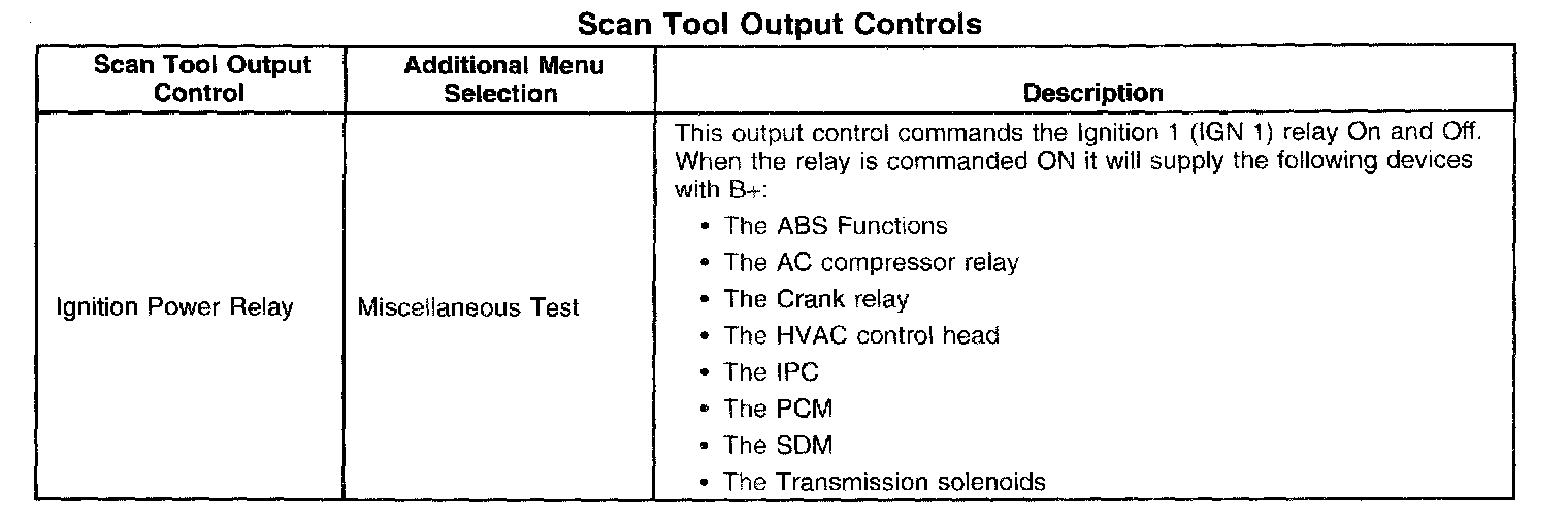 Scan Tool Output Controls