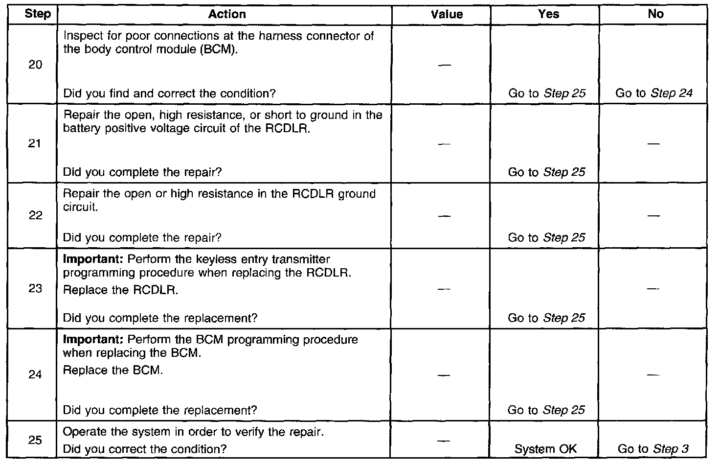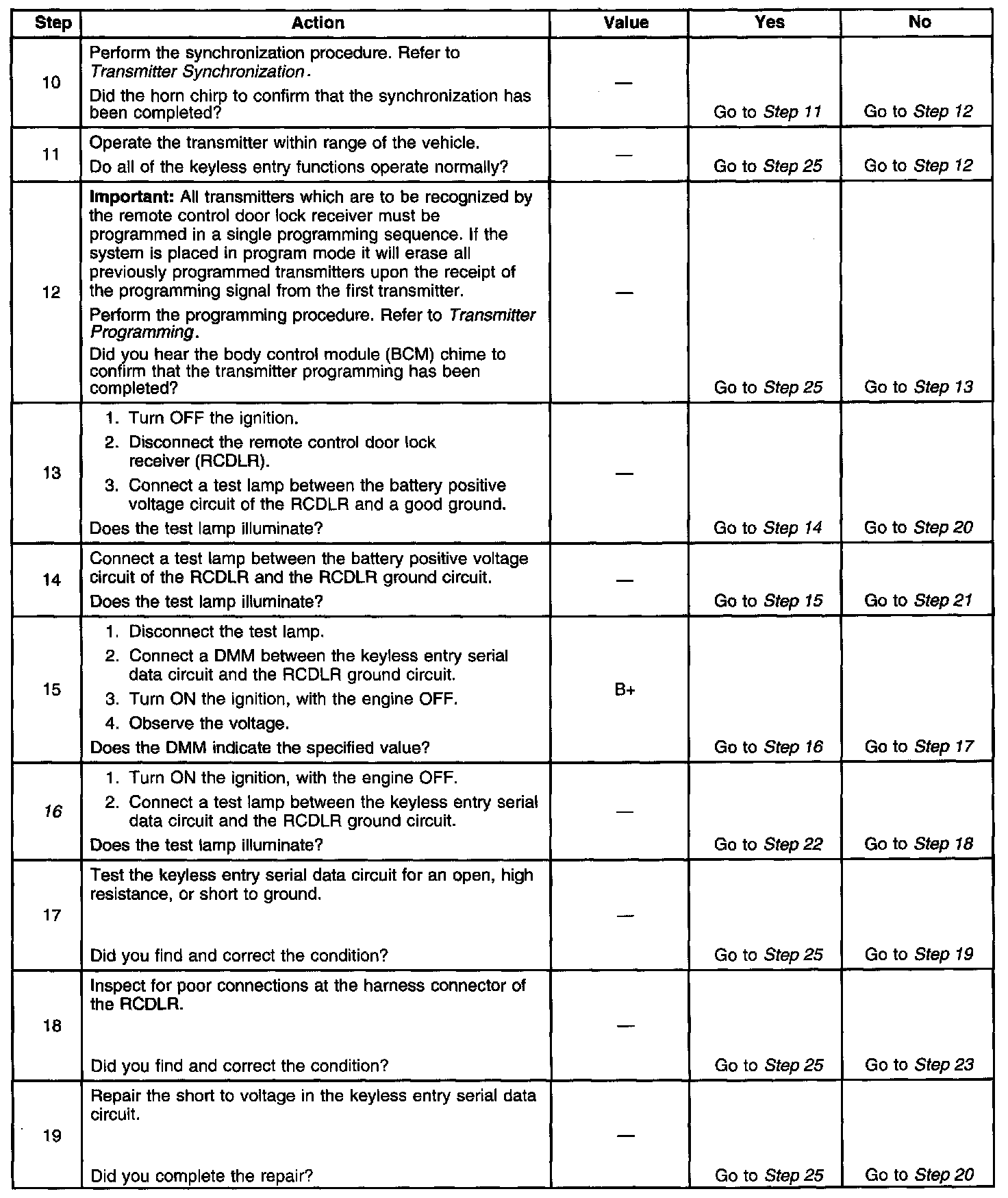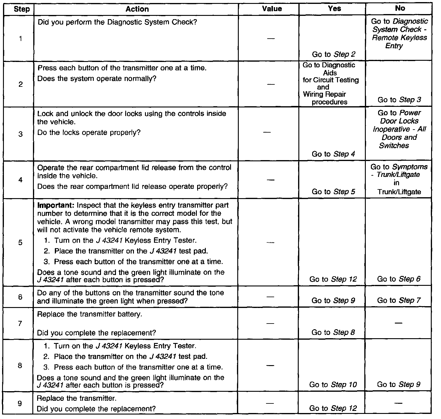 KEYLESS ENTRY SYSTEM INOPERATIVETEST DESCRIPTIONSteps 1-9: