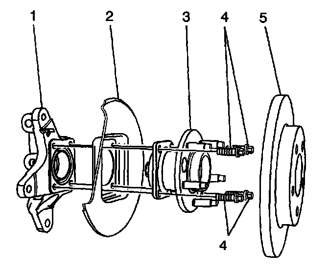 Important: The backing plate (2) is attached to the knuckle (1) through the wheel bearing hub bolts (4).