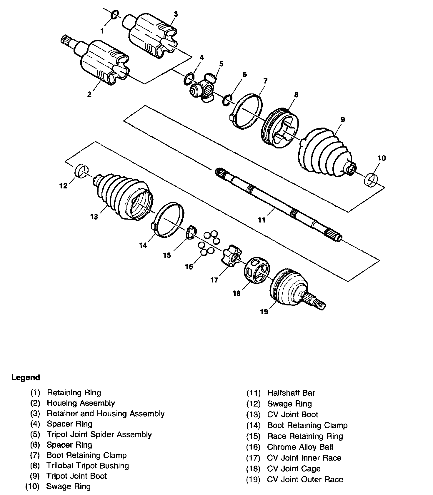 Wheel Drive Shafts Disassembled Views:
