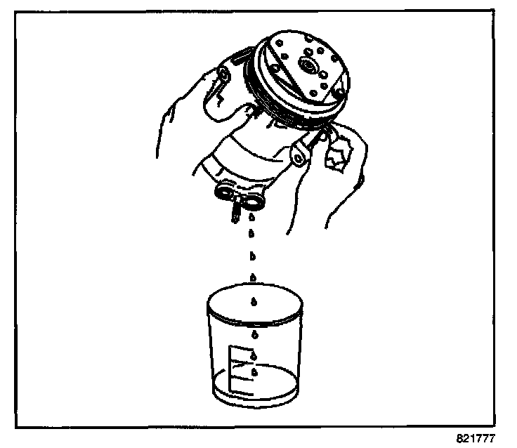 IMPORTANT: Drain and measure as much of the refrigerant oil as possible from the removed compressor.