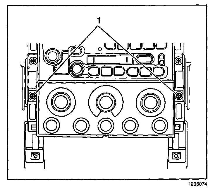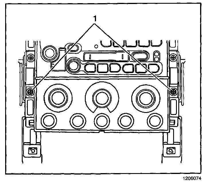 3. Install the retaining screws (1) to secure the HVAC control module.