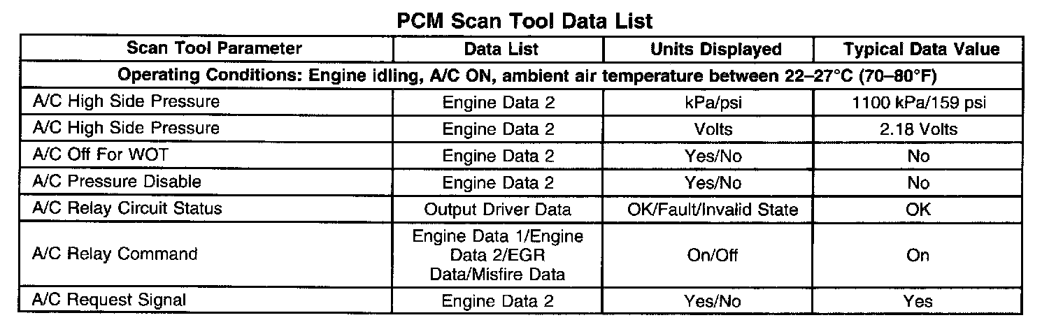 SCAN TOOL DATA LISTPCM Scan Tool Data List: