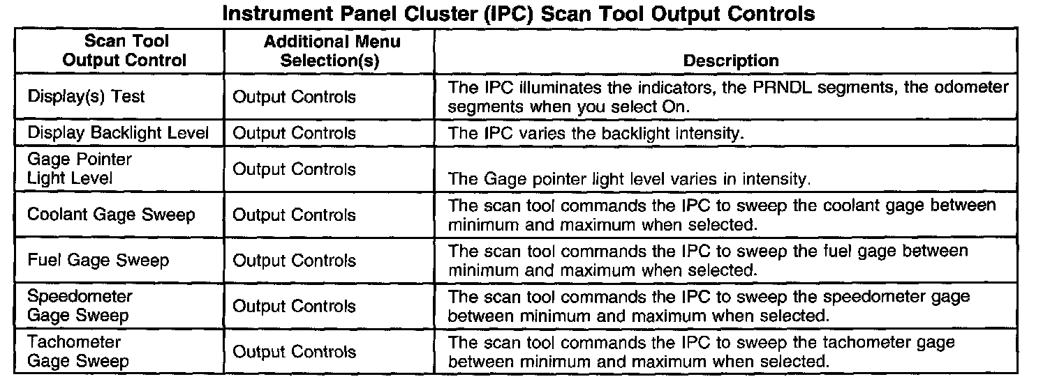Instrument Panel Cluster (IPC) Scan Tool Output Controls: