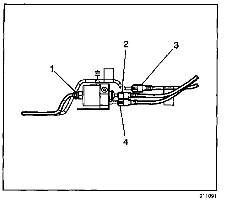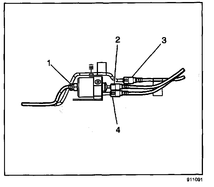 7. Connect the fuel feed (4) and the fuel return (2) quick-connect fittings at the inlet of the in-line fuel filter.