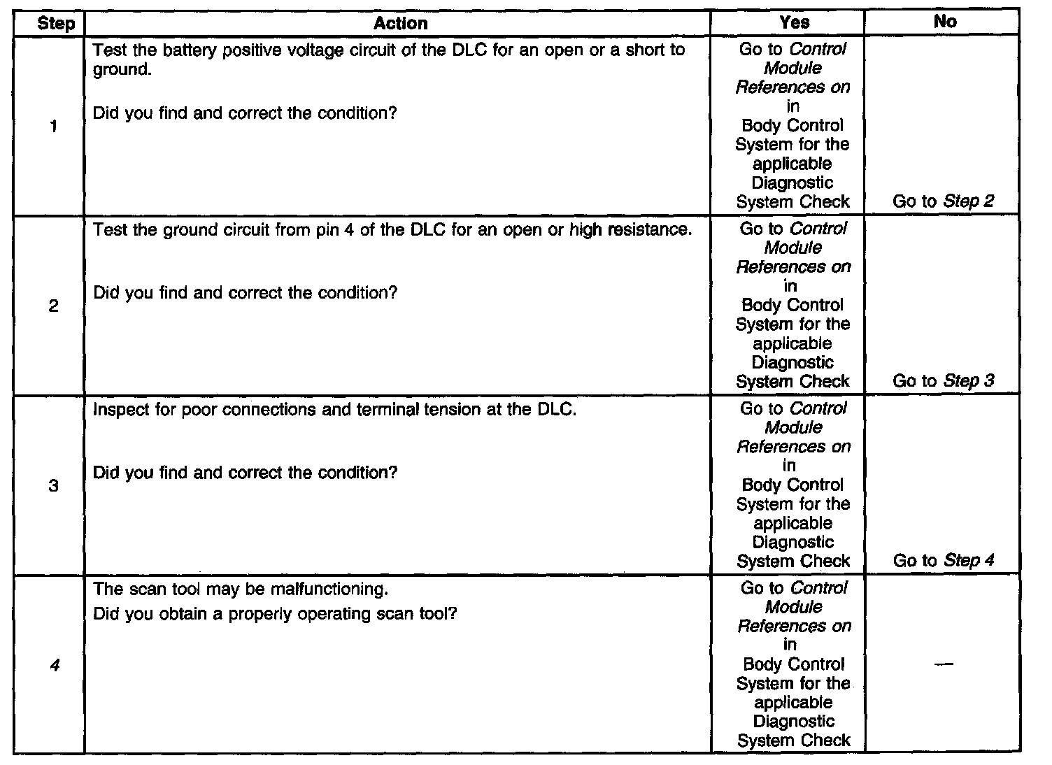 4. If the battery positive voltage and ground circuits of the DLC are functioning properly. The malfunction must be due to the scan tool.