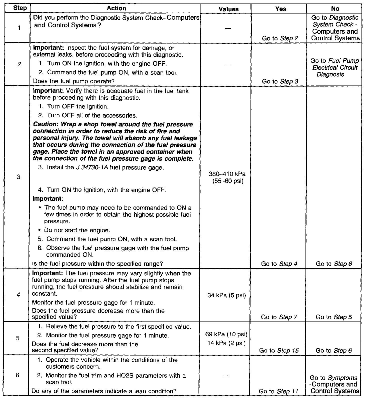 4. This step tests for an internal fuel leak. If the fuel pressure drops during this test, then an internal loss of pressure is indicated.