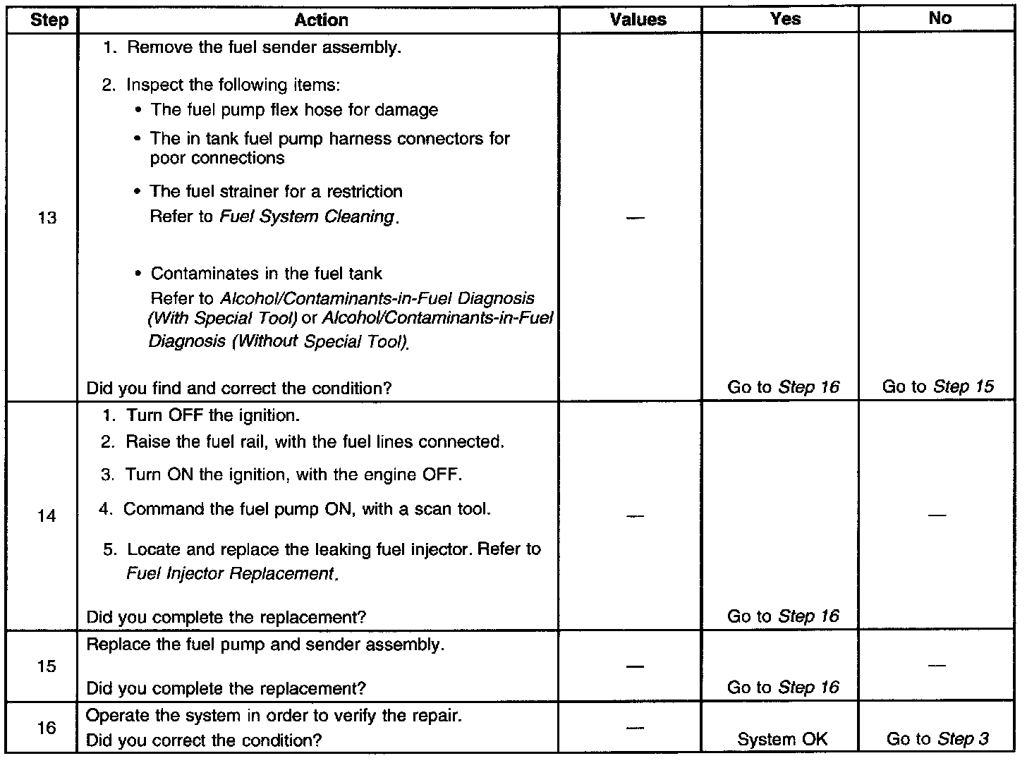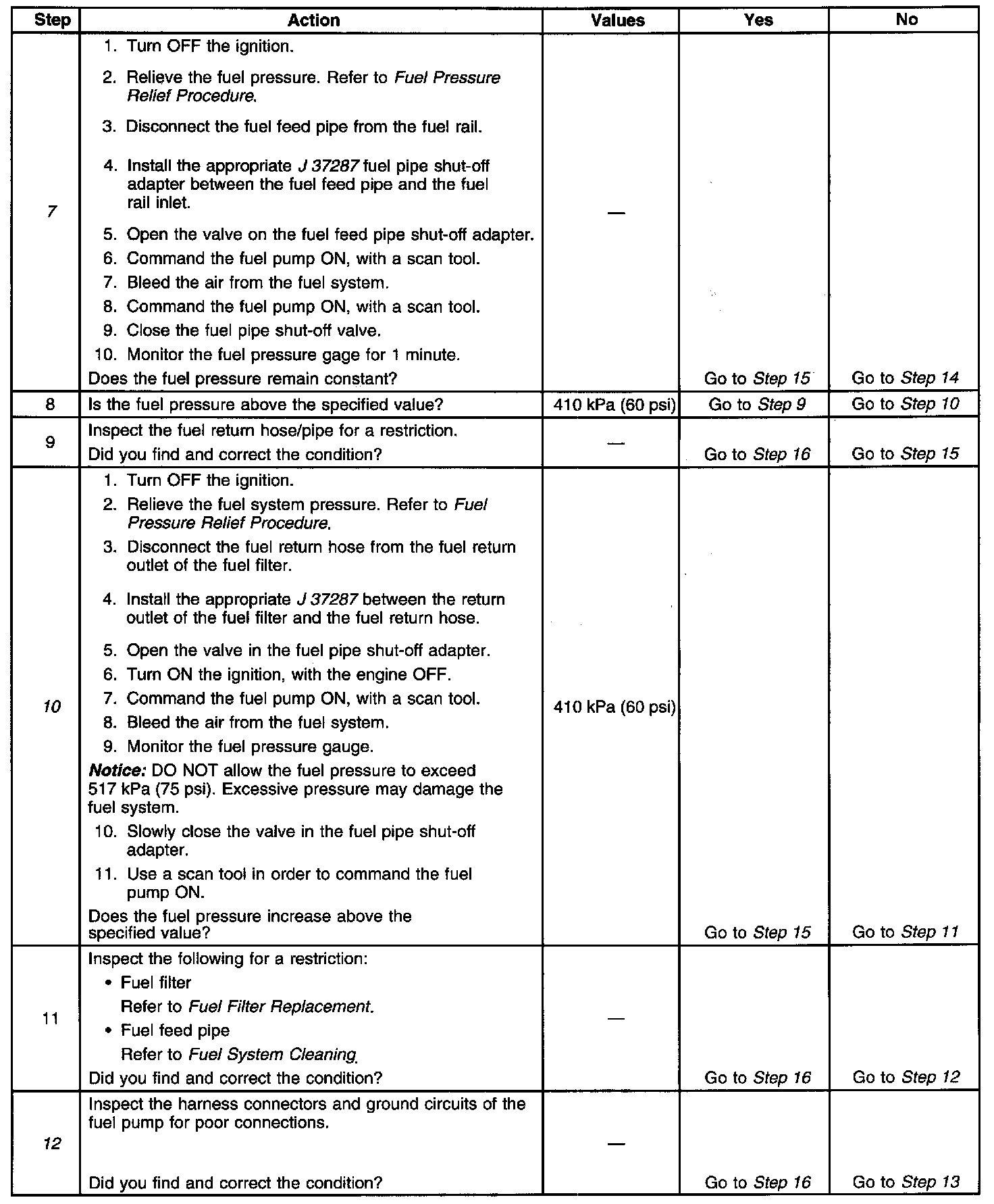 12. This step verifies that a circuit condition is not the cause of a fuel pressure concern. Inspect all fuel pump electrical circuits thoroughly.