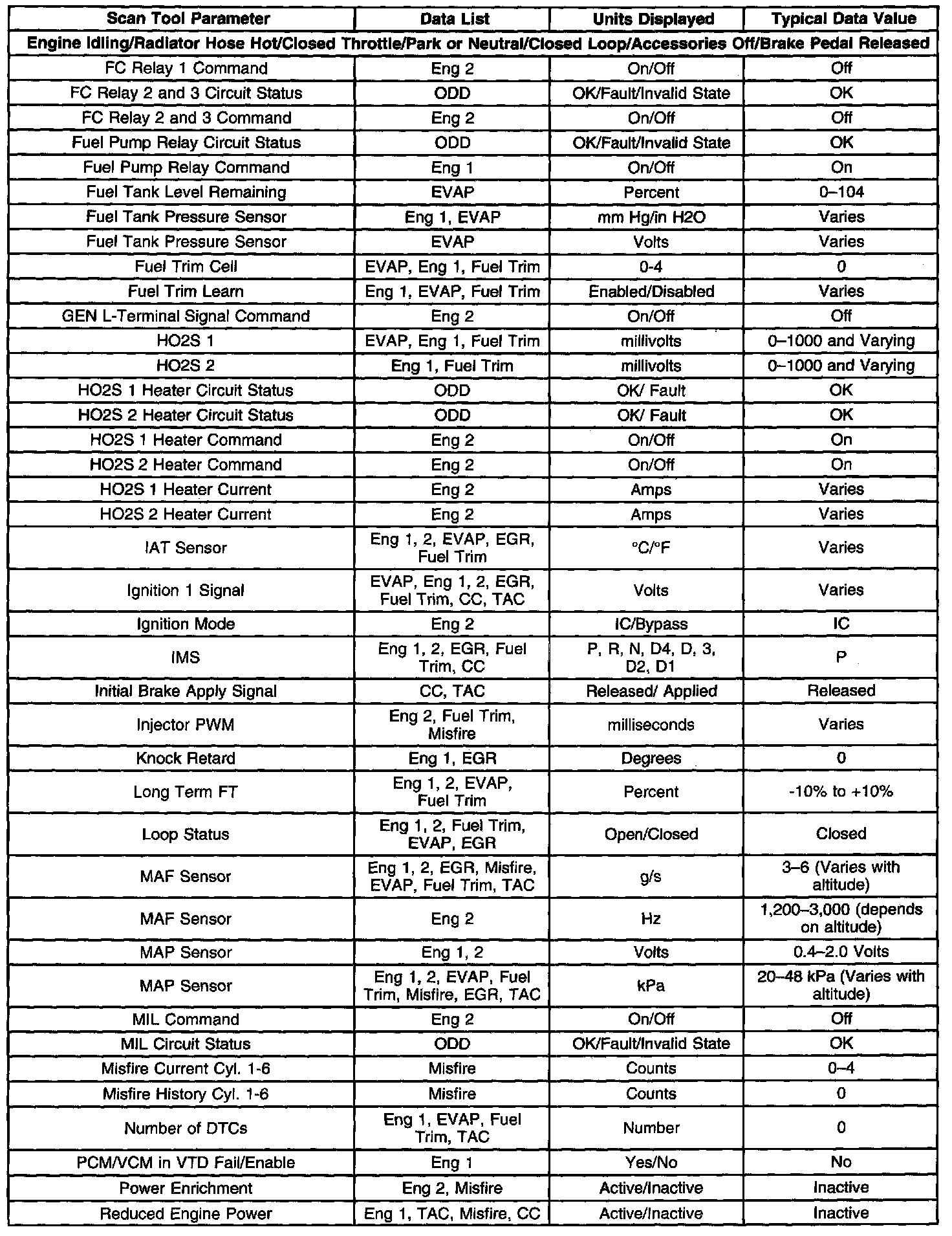 The column labeled Data List indicates where a parameter can be located on the scan tool. Refer to the scan tool operating manual for the exact locations of the data lists. The following is a description of each term listed: