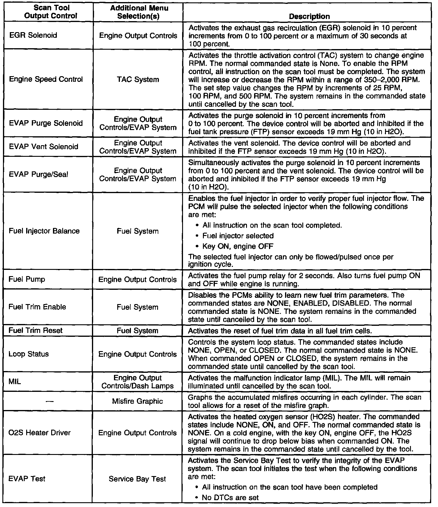 Scan Tool Output Controls