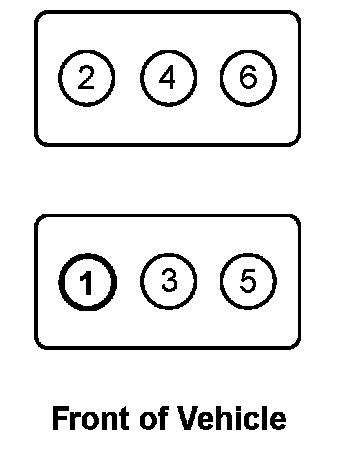 Starting from the front of the engine, the left bank cylinders are 1, 3, 5. The right bank cylinders are 2, 4, 6.