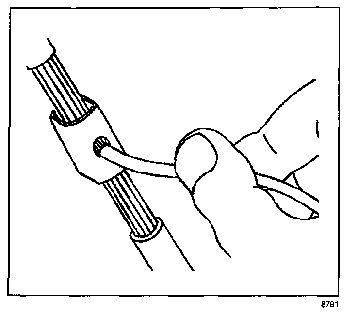 - Strip approximately 7.5 mm (5/16 in) of insulation from each wire to be spliced.