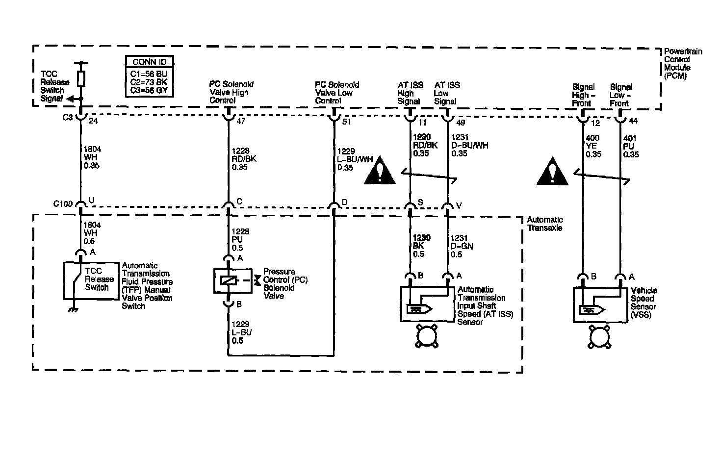 Automatic Transmission Controls Diagrams (VSS and AT ISS Sensors, Pressure Control Solenoid Valve, and TCC Release Switch):