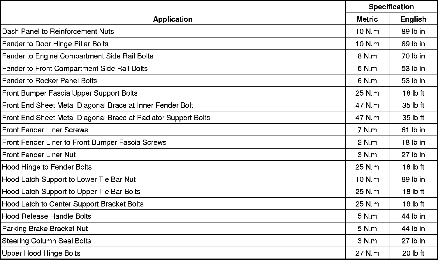 Fastener Tightening Specifications