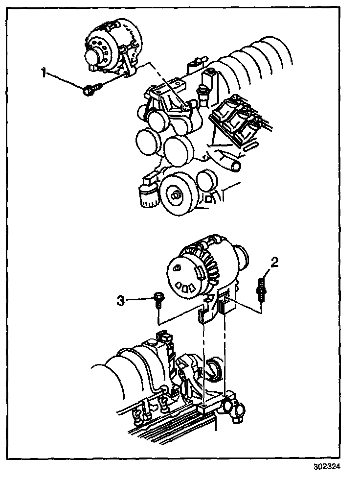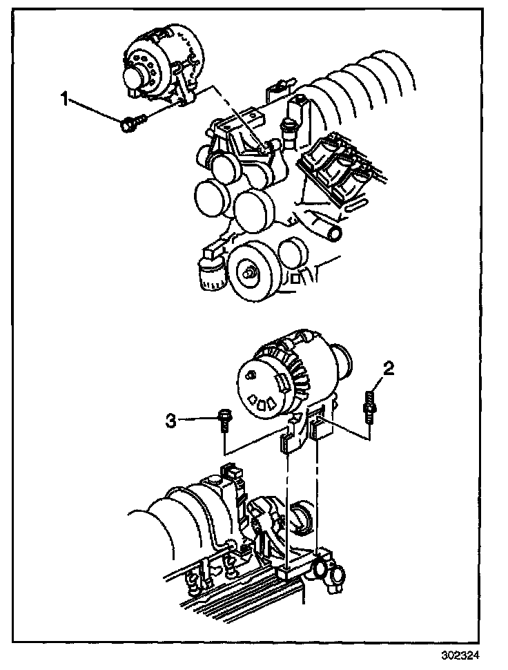 7. Install the generator bolts (1 3) to the generator bracket.