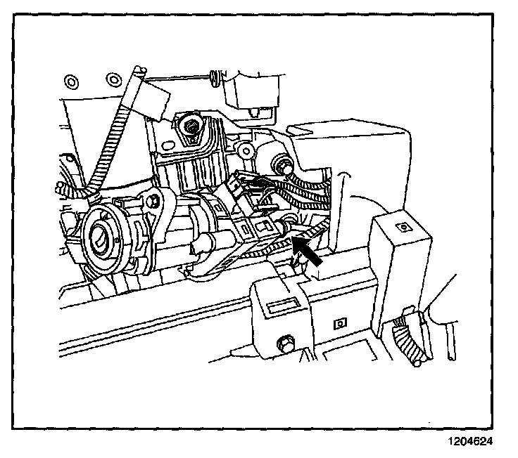 10. Depress the retainer to release the transaxle park/lock cable. Pull the park/lock cable from the ignition switch.