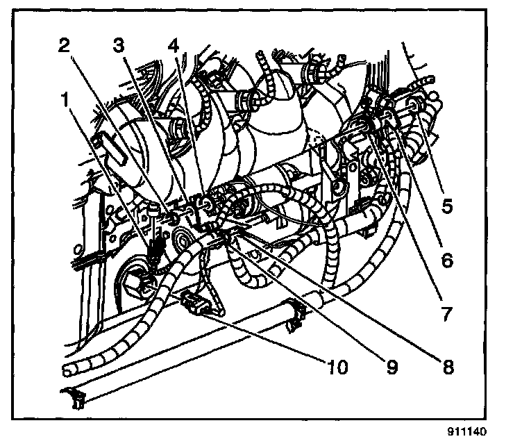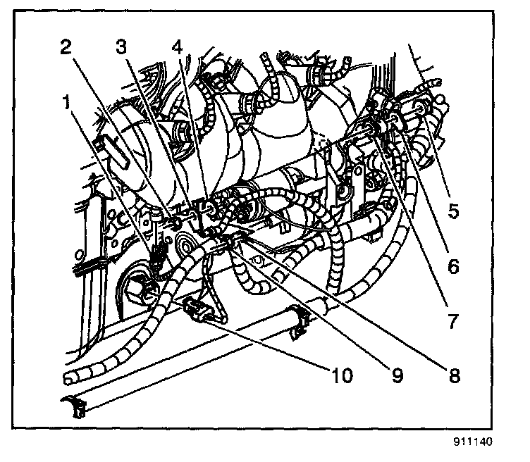 4. Install the starter solenoid wire (8) and the starter solenoid S terminal nut (9). Tighten finger tight to the starter motor.
