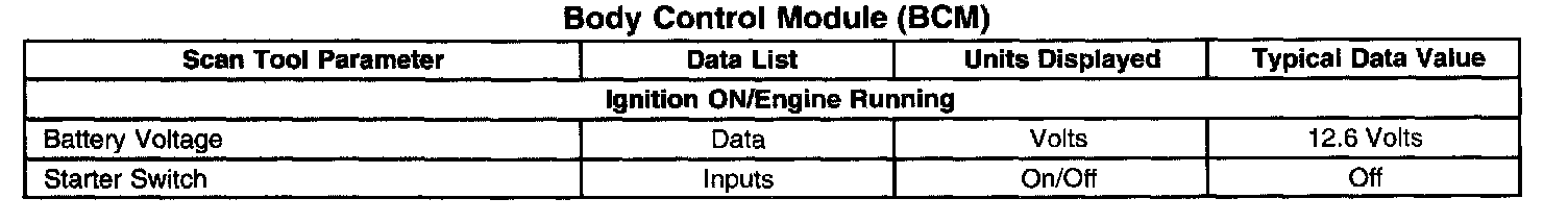 Normal Scan Tool Data Values - Body Control Module (BCM)
